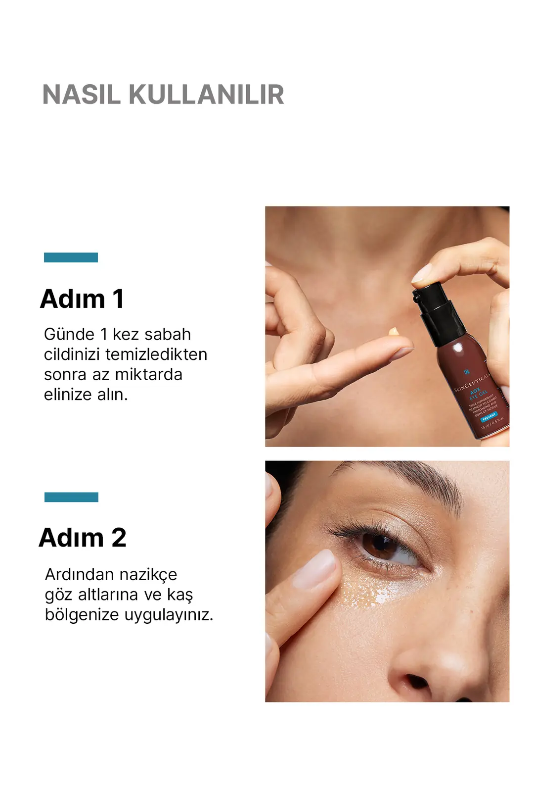 Sabahları günde 1 kez; göz altlarına ve kaş bölgesine, göz kapaklarından kaçınarak uygulayınız.